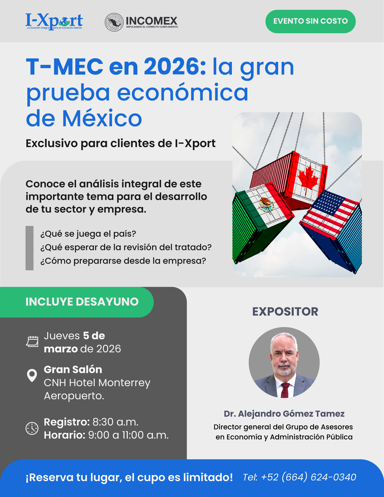 ¿Cuáles son las implicaciones de la revisión al Tratado entre México, Estados Unidos y Canadá (T-MEC) sobre la economía mexicana? Descúbrelo asistiendo a este evento presencial exclusivo para nuestros clientes.